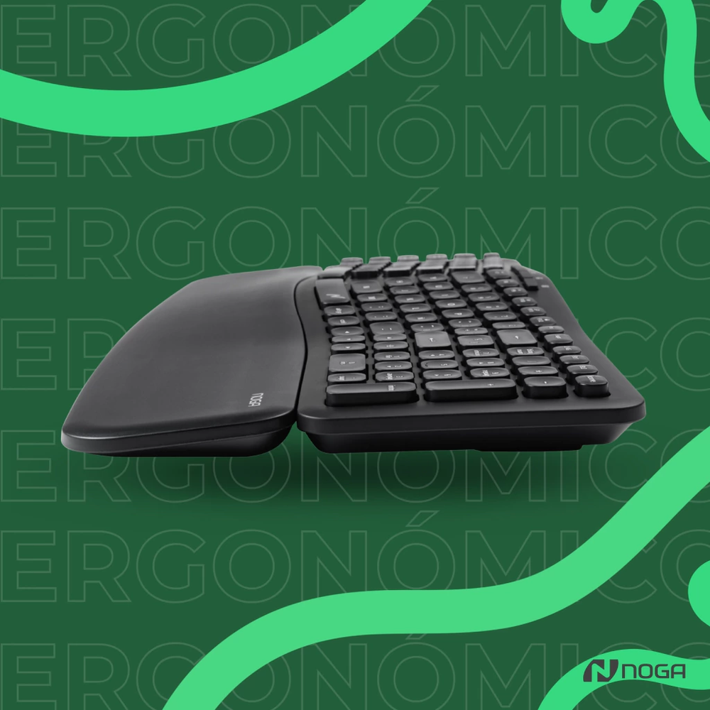 Disfrutá de una experiencia de tipeo cómoda, moderna y sin cables con el teclado inalámbrico NKB-Q90. Su diseño ergonómico junto con el apoya muñecas integrado cuidan tu postura y reducen la fatiga durante largas horas de trabajo o estudio.