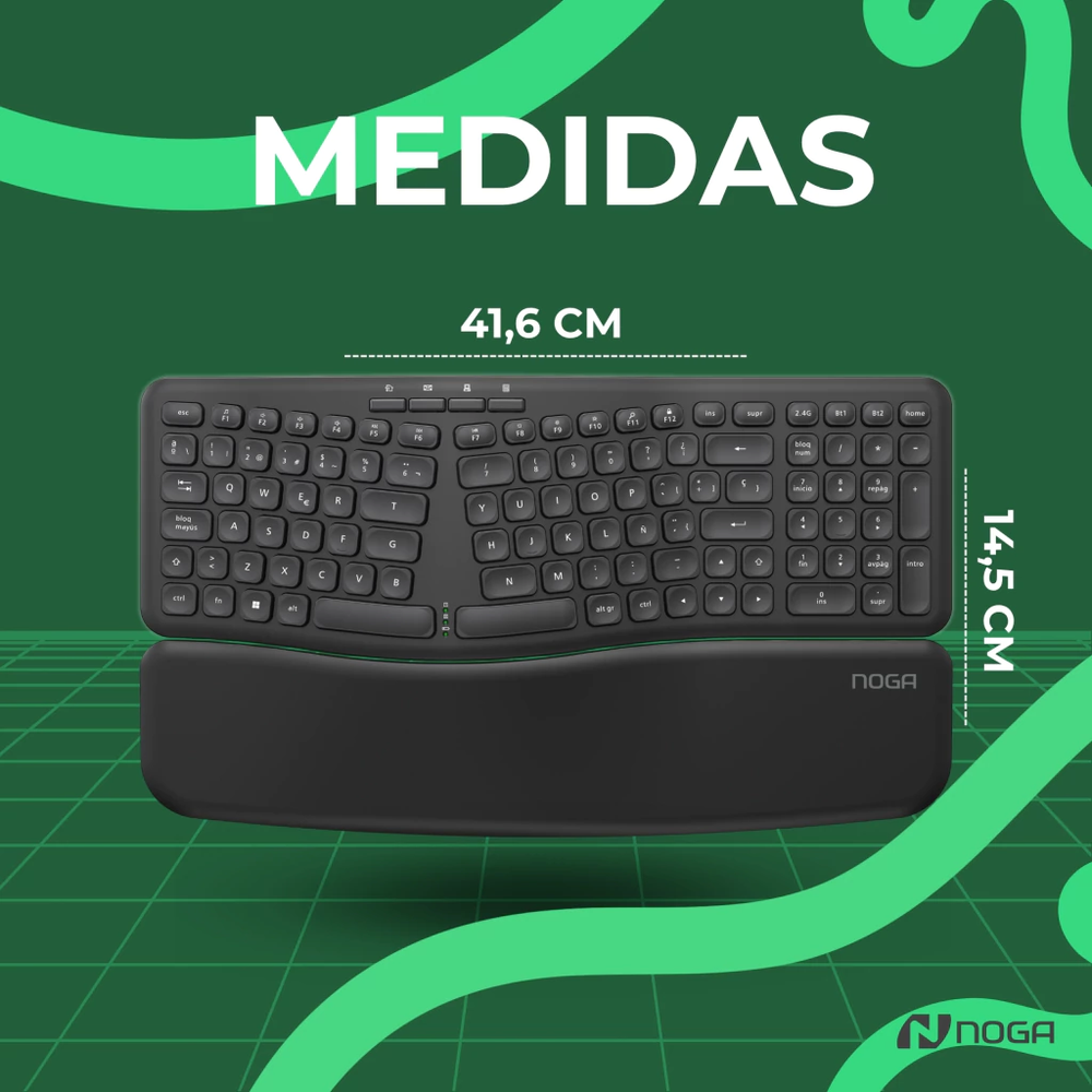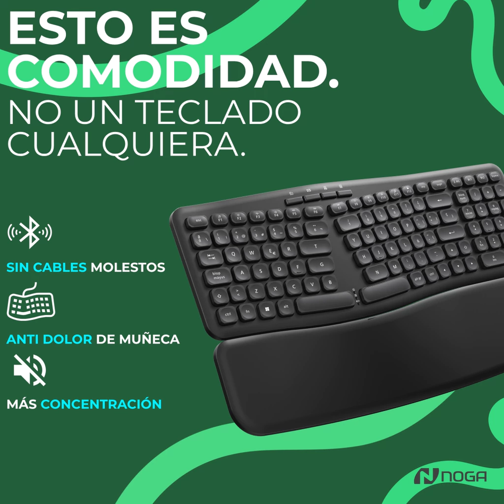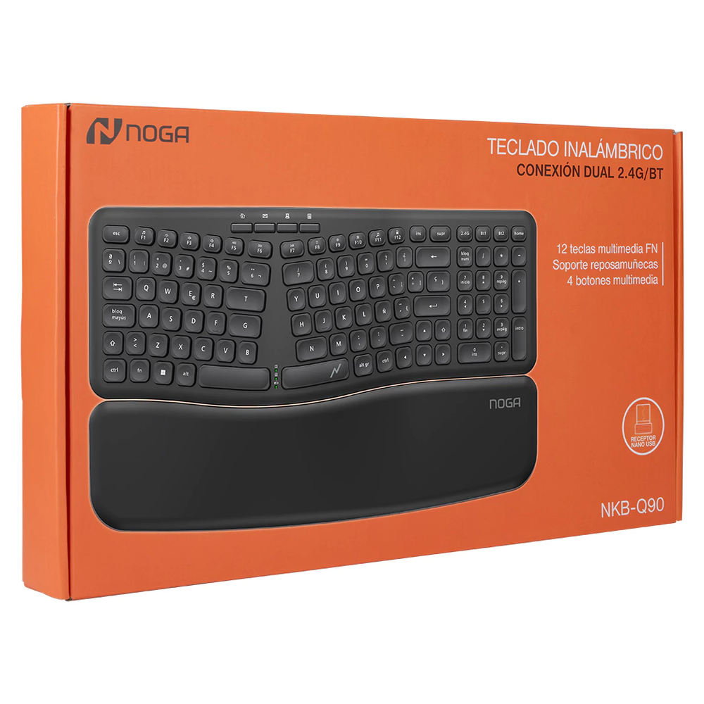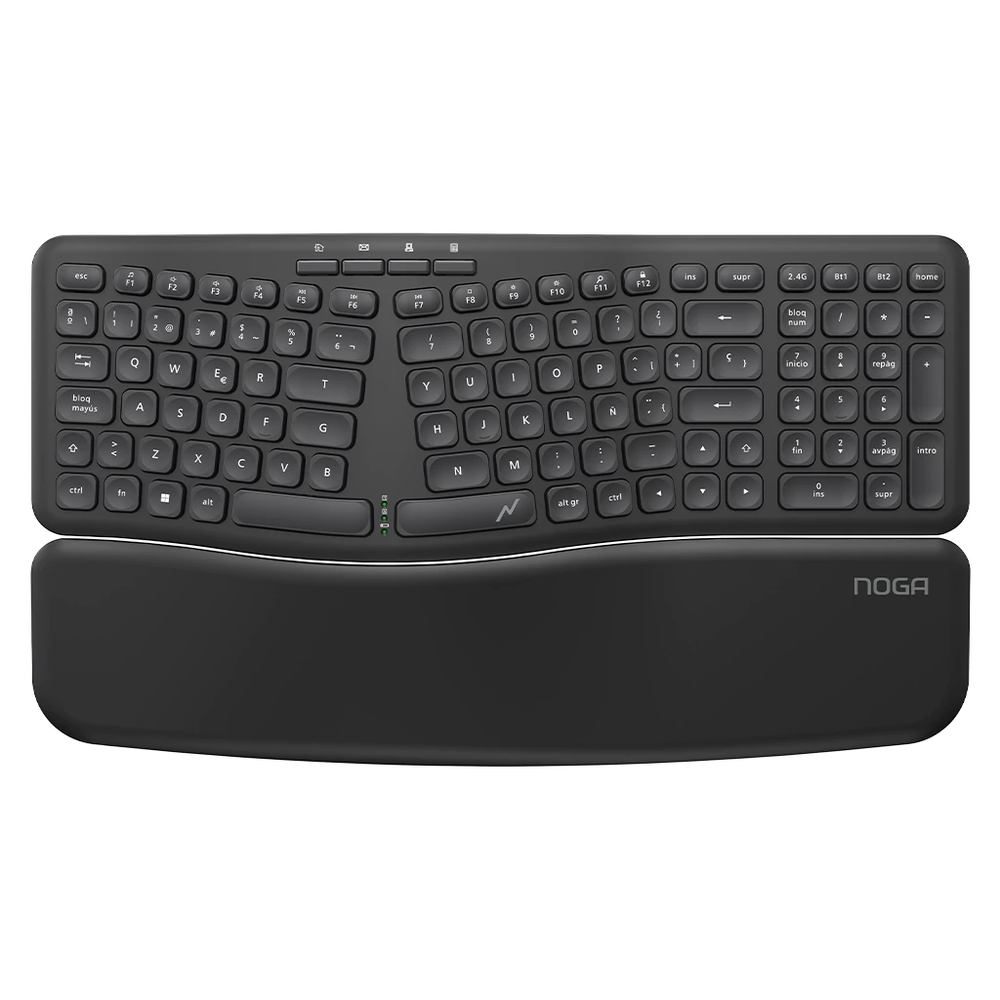 NKB-Q90 // Teclado Inalámbrico 2.4G + Bluetooth + Ergonómico con Apoya Muñecas