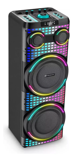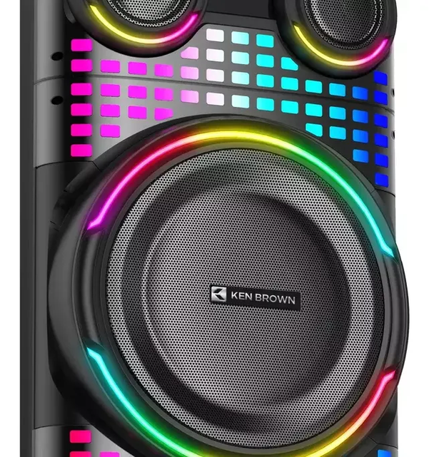 🔊 PARLANTE KEN BROWN – MONSTER12 • Bafle Potenciado • Gabinete acústico 4 vías • Party Mixer • Autoamplificado doble woofer 12” • Bajos Extremos • 40.000W PMPO • Luces LED • Conectividad Bluetooth 5.0 📲 • Peso: 15,6 Kg • COMPACT HIGH POWER AUDIO SYSTEM WITH FULL LED SCREEN • Rango Frecuencial: 50Hz – 20KHz • Potencia RMS: 150W • Conexión micrófono x2 🎤 • EXTRA MEGA BASS • Sensibilidad: 40dB • Dimensiones: 37 x 109 x 37 cm (an x al x pr)
