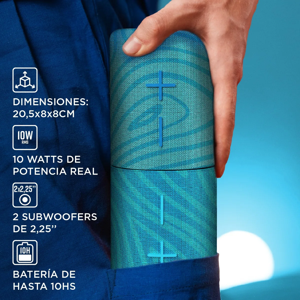 Características: Diseños 2 en 1 Cierre Magnetico 10 Watts RMS 2 Subwoofers de 2.25 10 Horas de Bateria Conexión Bluetooth Auxiliar 3,5mm