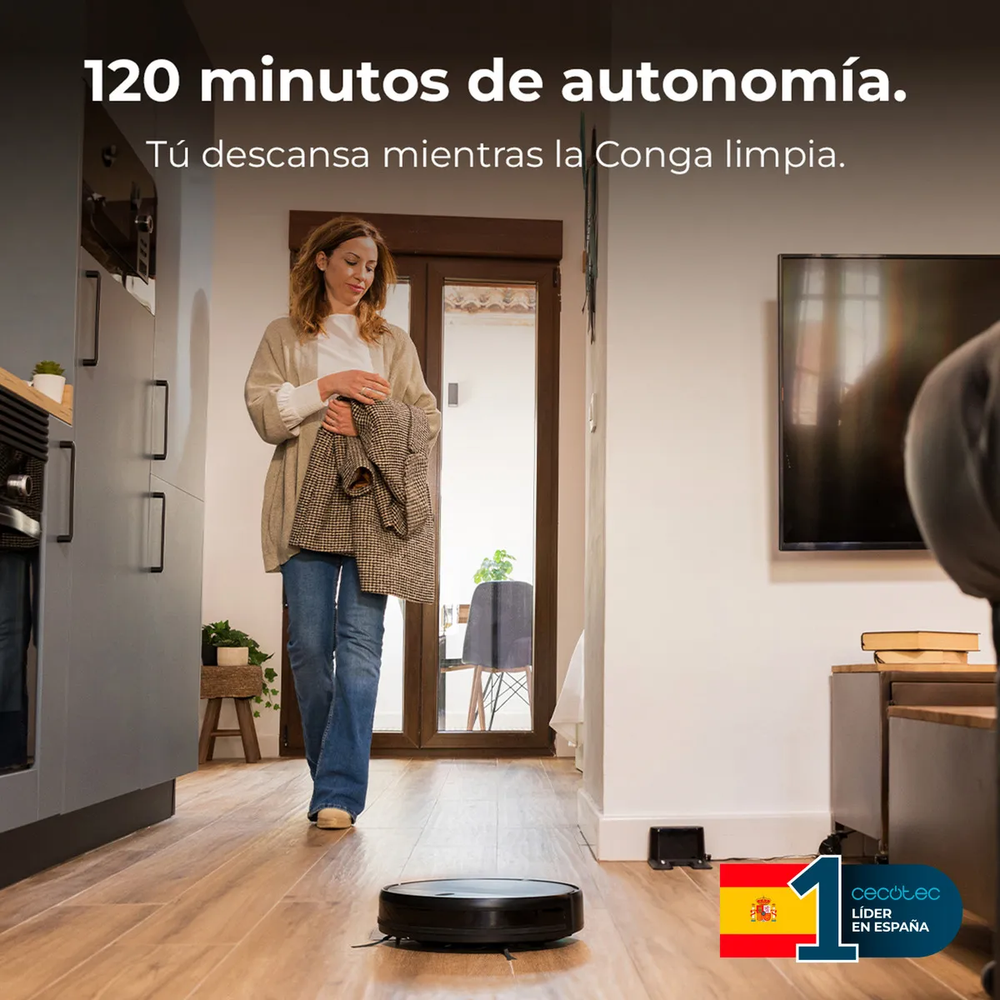 Gran autonomía: aprovecha hasta sus 120 minutos de autonomía con tecnología Total Surface para que tú descanses mientras la Conga limpia por vos.
