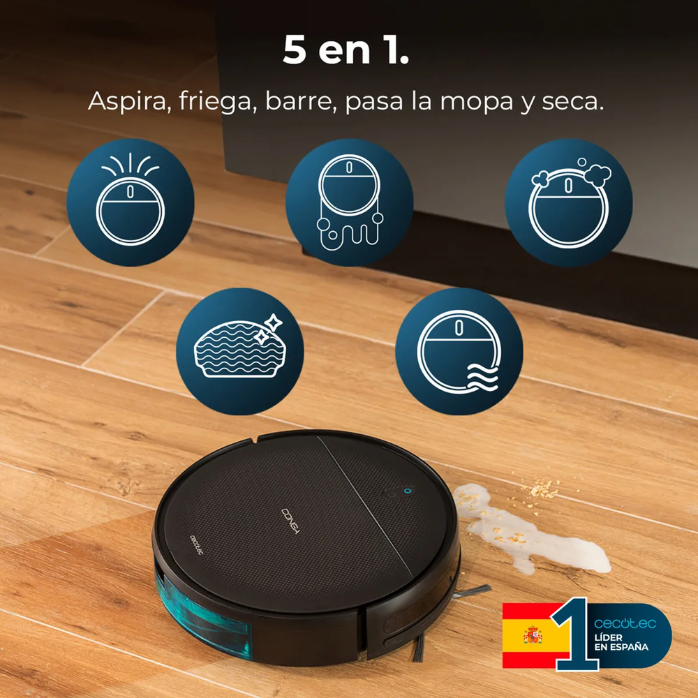 Robot 5 en 1: aspira, friega, barre, pasa la mopa y seca.