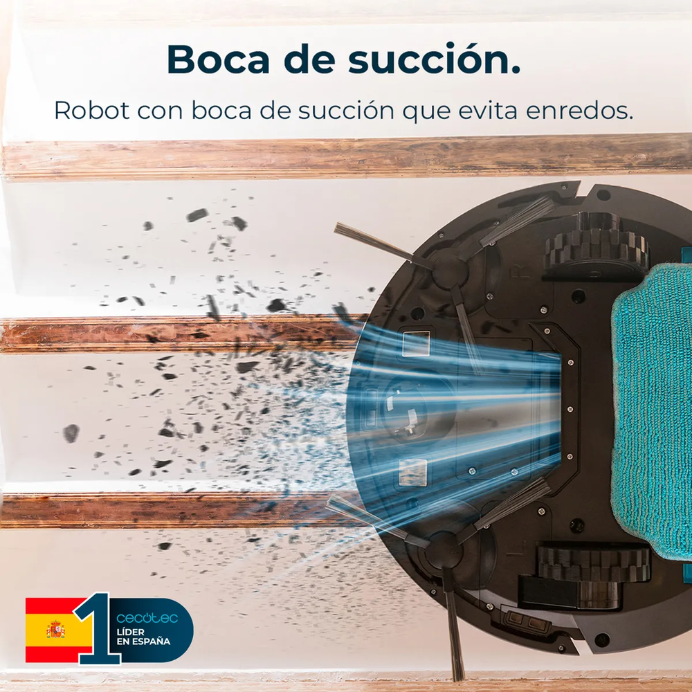 Robot aspirador con navegación giroscópica para una limpieza total de la casa. Motor de succión de 2000 Pa. 2 cepillos laterales. 2 mopas de fregado.