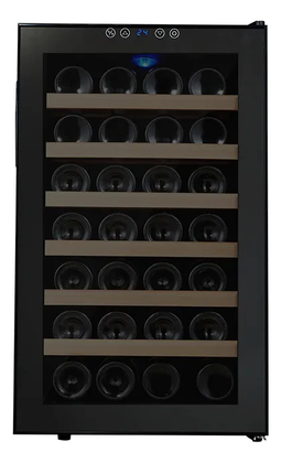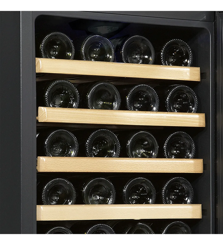 Este modelo es ideal para aquellas personas que quieren almacenar sus vinos en las condiciones óptimas de guarda, pero que no cuentan con amplios espacios en su hogar. Es ideal para vinos tintos, y dadas sus dimensiones puede ir perfectamente sobre un mueble o una mesada. La cava T28 cuenta con capacidad para 28 botellas estándar de 750ml y 40cm de largo. Tiene marco de acero inoxidable, es silenciosa, y su luz interna led de color azul aporta sofisticación y elegancia al ambiente donde la luzca, sin dañar su colección de vinos.