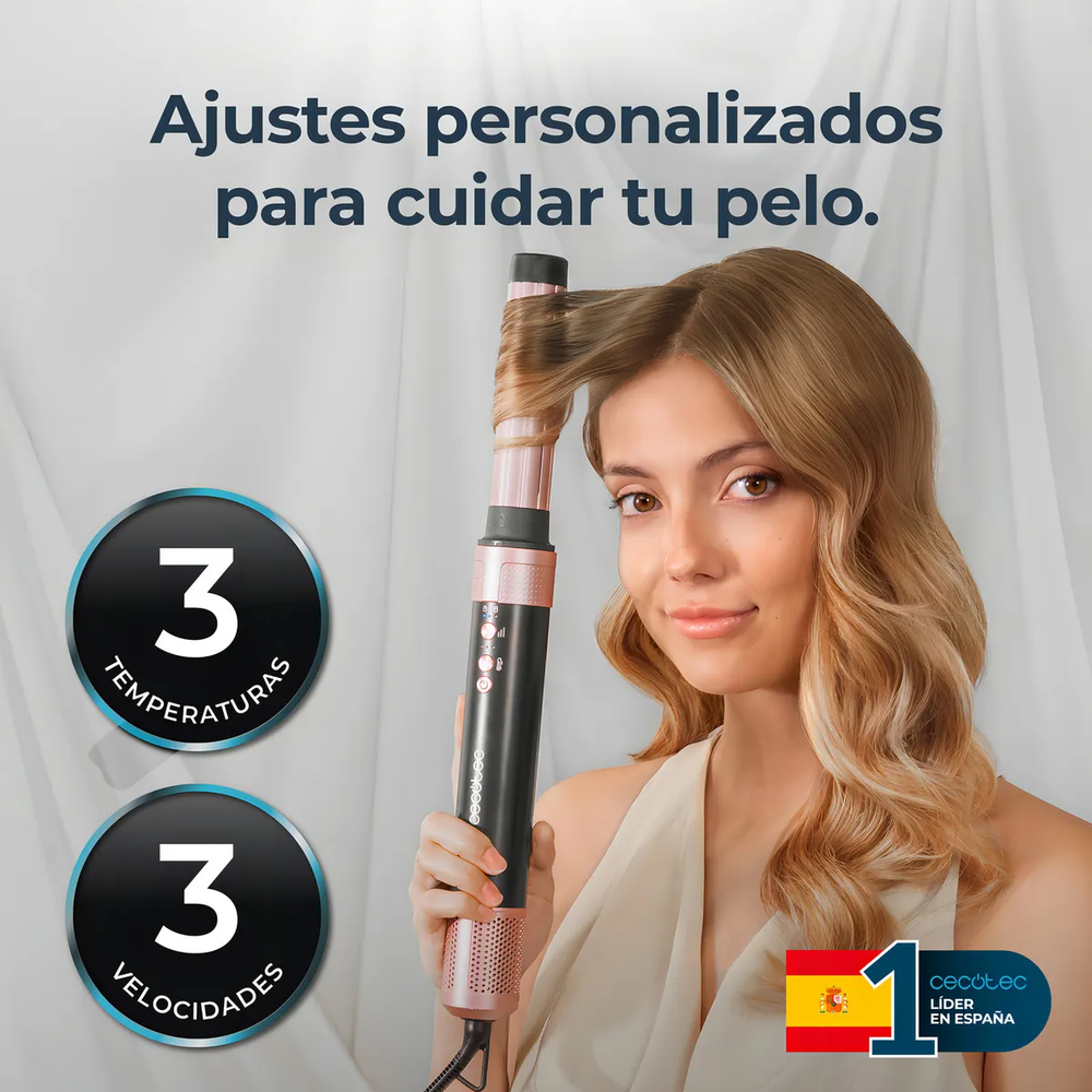 3 velocidades de flujo de aire: regula el flujo de aire de tu moldeador según las necesidades de tus peinados.
