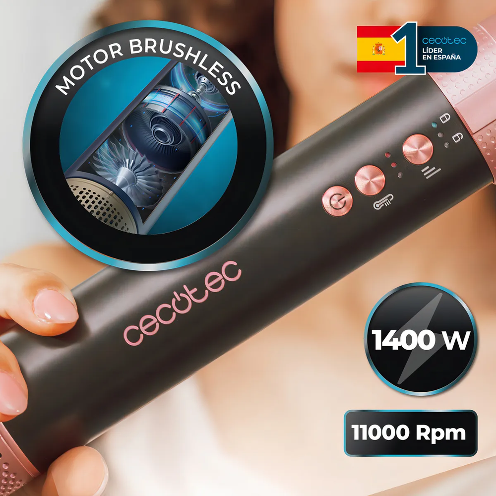 Motor con tecnología brushless: Potente motor digital de 1400 W y 110000 rpm que facilita el moldeado de tu pelo en poco tiempo.