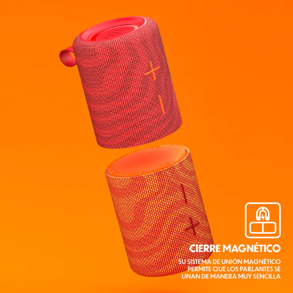 Características generales Marca Stromberg Modelo Mega Twin Lava Color Naranja Voltaje 5V Especificaciones Cantidad de parlantes 2 Formato del parlante Portatil Con luces LED No Con modo manos libres No Con controladores DJ integrados No Con función karaoke No Con efecto de voz No Con radio No Es portátil Sí Es inalámbrico Sí Es gamer No Sonido Potencia de salida (RMS) 20 W Tipos de parlante Medio Tipos de filtros del parlante Activo Batería Autonomía máxima de la batería 11 h Incluye batería recargable Sí Accesorios Con base No Con micrófono No Incluye soporte No Otros Lugares de colocación De piso, Portátil Es a prueba de agua Sí Conectividad Con Bluetooth Sí Con Wi-Fi No Registros de producto Organismo de certificación (OCP) Bureau Veritas Argentina S.A. Otros Tipos de alimentación USB-C Tiempo de carga 2 h El Parlante Portátil 2 en 1 que Duplica tu Experiencia Sonora