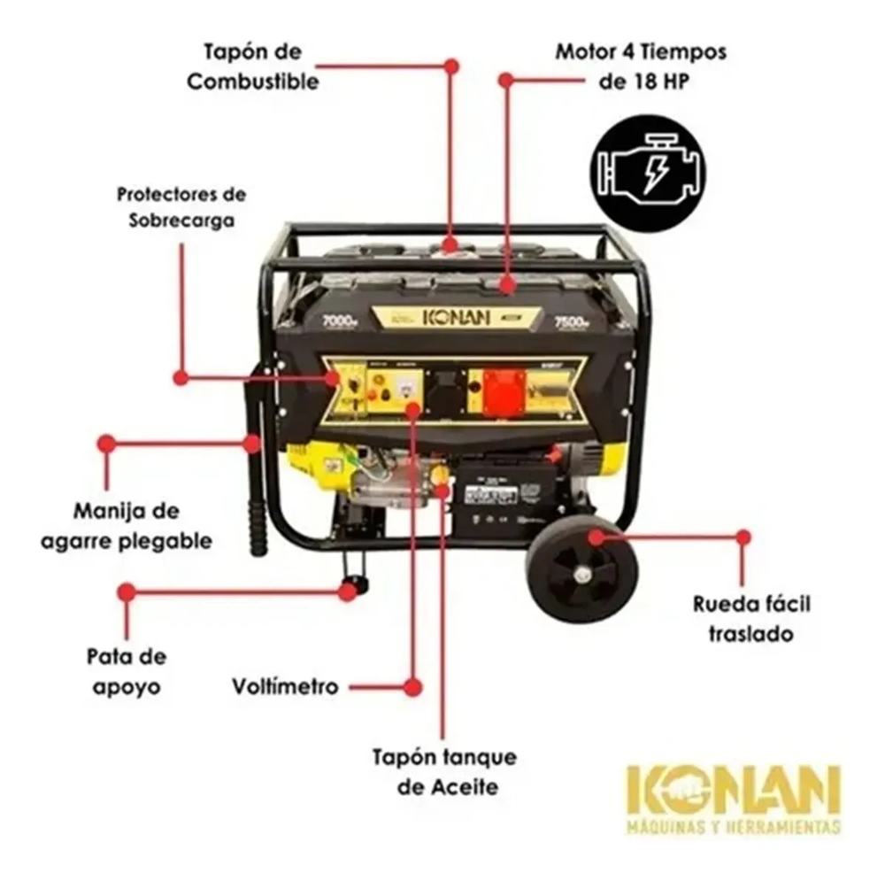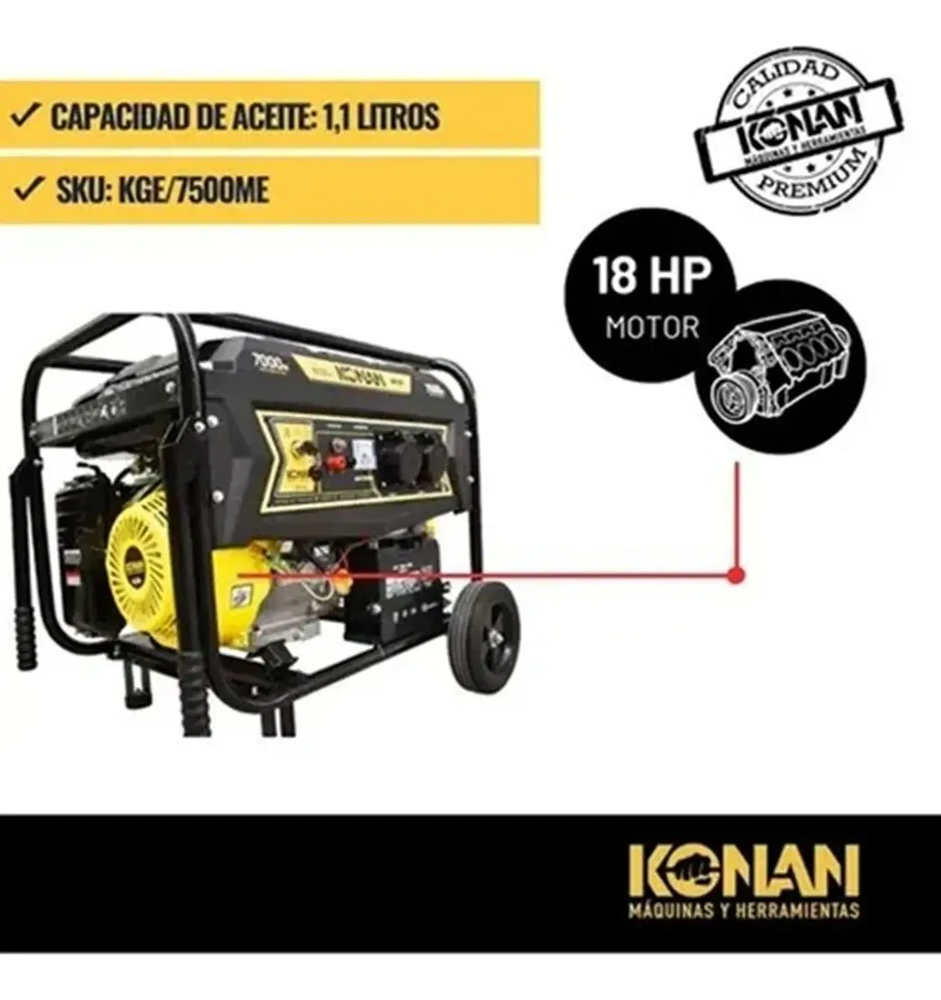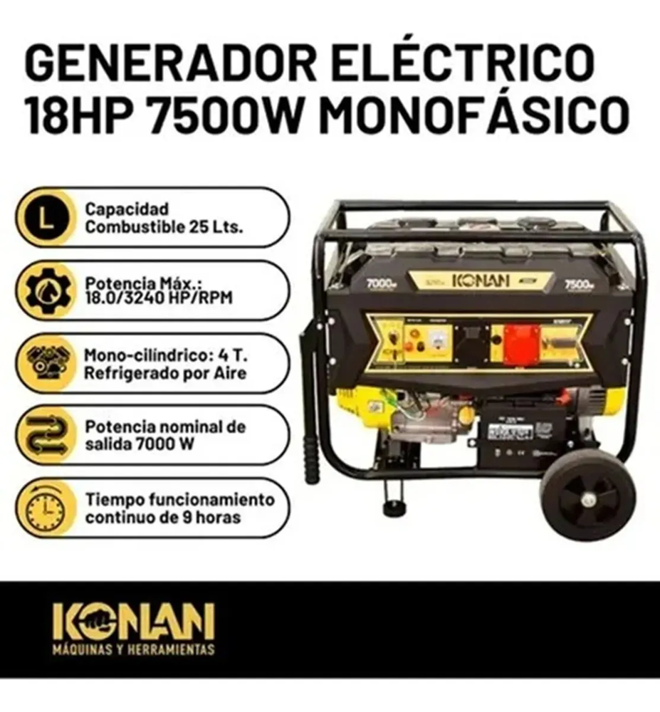 ¡Potencia y confiabilidad en un solo equipo! El generador Konan KGE/7500TE es la solución ideal para tus proyectos más exigentes. Con sus 7500 watts de potencia y un motor de 18 HP, este generador trifásico te garantiza un rendimiento excepcional en cualquier situación.