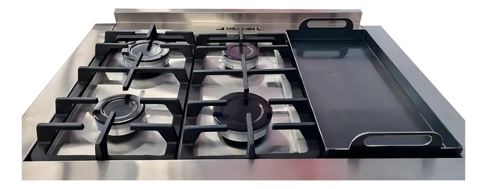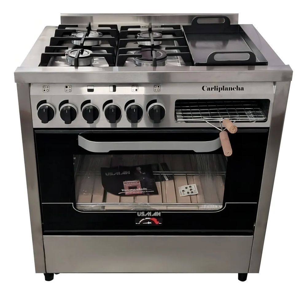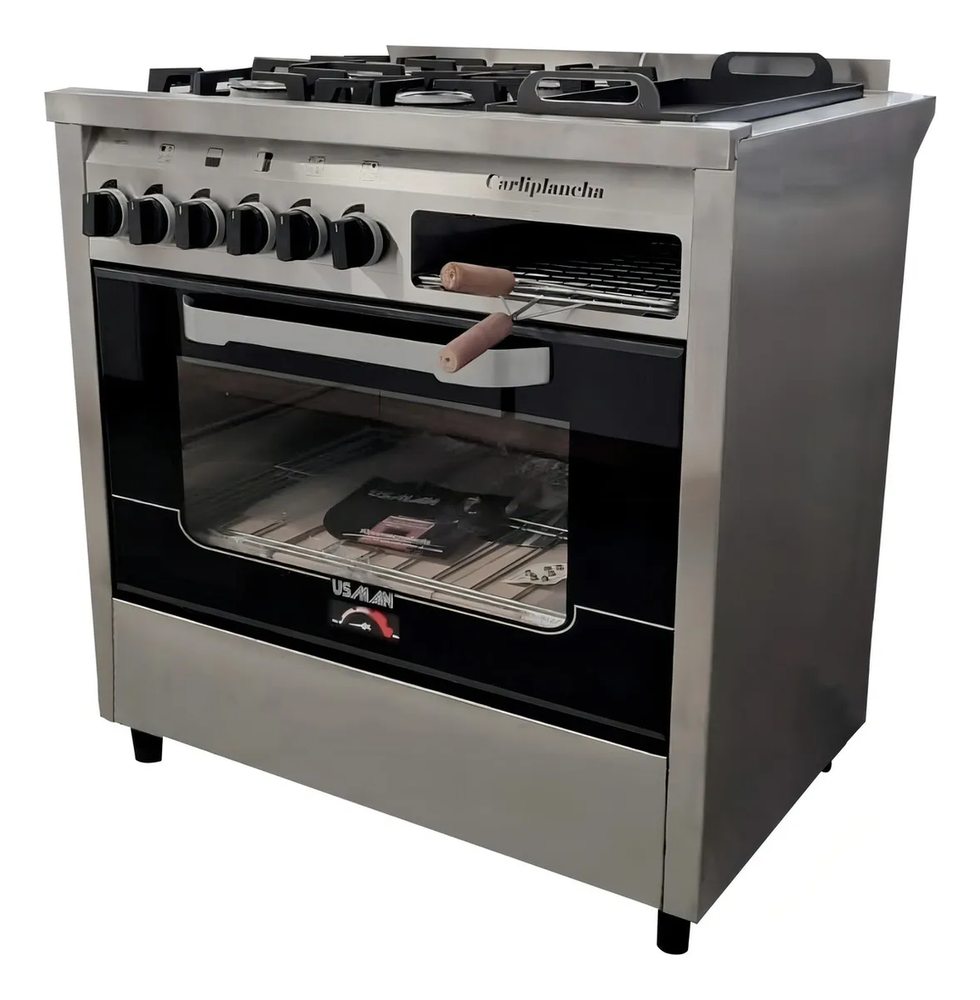 Características generales Marca Usman Modelo Carli 992 Color Acero inoxidable Tipo de gas GN Es convertible a GN Sí Es convertible a GLP Sí Tipo de montaje De pie Especificaciones del horno Tipo de puerta del horno Ciega Con horno doble No Con temporizador No Con horno autolimpiante No Con grill en el horno No Con luz en el horno No Otros Con cajón parilla No Especificaciones generales Tipo de encendido Manual Es industrial Sí Especificaciones de la cocina Cantidad de hornallas 4 Con plancha Sí Con freidora No Con pantalla digital No Con comando táctil No Con tostador No Con baño María No Peso y dimensiones Altura x Ancho 87 cm x 85 cm Peso 57 kg Otros Con tapa No Con patas Sí