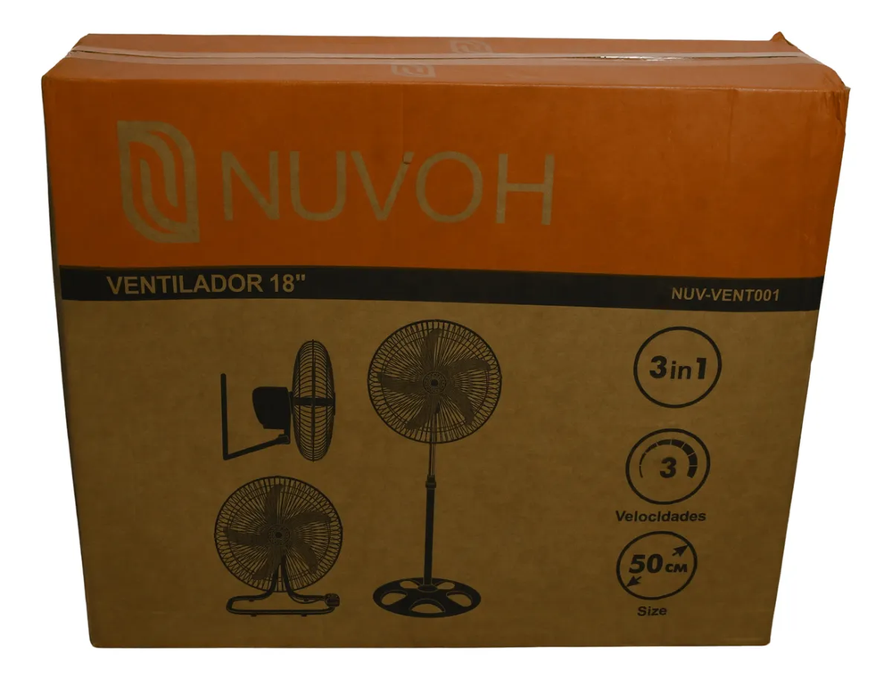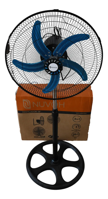 Características generales Marca Nuvoh Línea Ventiladores Modelo 3 en 1 Voltaje 220V Peso y dimensiones Diámetro 50 cm Altura 61,5 cm Profundidad 17,5 cm Ancho 51 cm Peso 7 g Iluminación Con luz No Funciones Con función turbo No Especificaciones Tipo de ventilador 3 en 1 Tipo de alimentación Corriente doméstica Cantidad de velocidades 3 Incluye control remoto No Características de la estructura Color de la estructura Negro Color de las aspas Plateado Material de las aspas Aluminio Cantidad de aspas 5 Material de la rejilla Metal Con aspas reversibles No