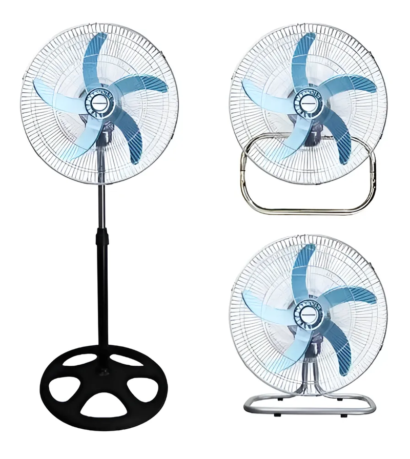 Descubre el Ventilador De Pie Pared 3 En 1 una solución versátil para mantener tu espacio fresco y cómodo. Con un diseño 3 en 1, puedes utilizarlo como ventilador de pie, de pared o extensible, adaptándose a tus necesidades. Su diámetro de 18 pulgadas y 5 aspas metálicas garantizan un gran caudal de aire, mientras que su parrilla metálica reforzada asegura durabilidad. Con una potencia de 90 Watts y conexión eléctrica de 220V, este ventilador ofrece 3 velocidades para un control óptimo del flujo de aire. Su motor silencioso y construcción metálica proporcionan un mayor empuje y estabilidad. Además, su diseño oscilante permite una mejor distribución del aire en la habitación. Ideal para cualquier ambiente, este ventilador combina eficiencia y funcionalidad.