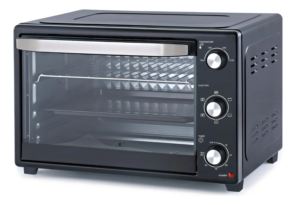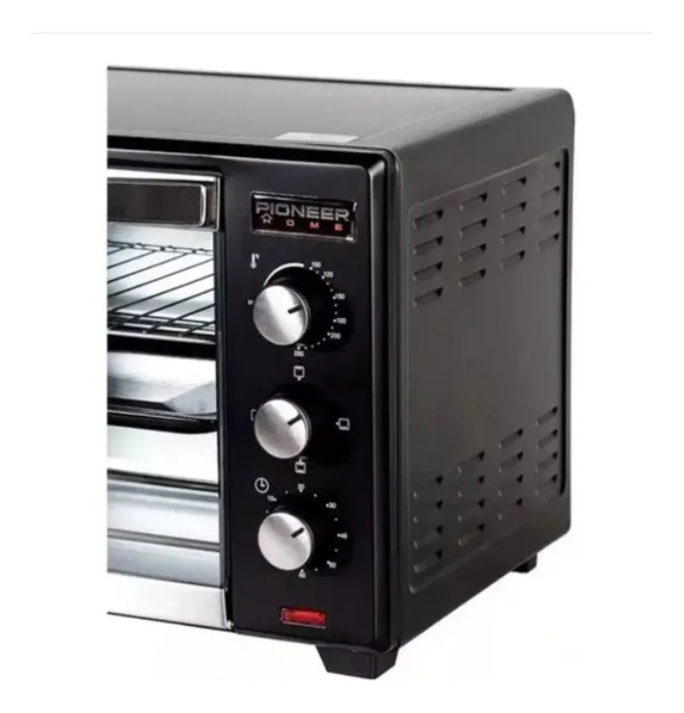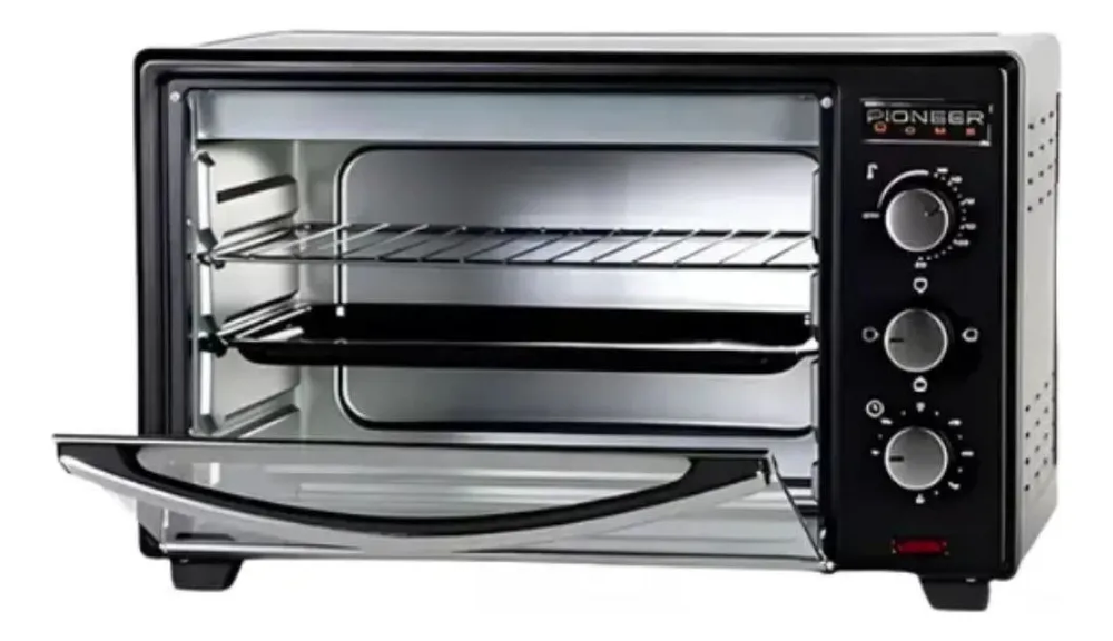 Espacio reducido, cocción óptima Si tu cocina es pequeña, el horno de mesa es la mejor solución. Vas a disfrutar de las mismas ventajas que con uno convencional y ganarás practicidad y comodidad. Mantené el sabor Con su función de grill los alimentos quedarán dorados, crocantes y ricos. Las pizzas, quesadillas y tartas parecerán recién hechas. Que no se te pase El timer programable te va a ayudar a graduar los minutos indicados. Además, con el termostato ajustable vas a poder manejar el calor adecuado y lograr el punto justo. Ideal para hornear, cocinar a la parrilla o a la plancha y tostar. Selector de temperatura de 100ºC a 250ºC. Timer de 60 minutos. Selector de potencia. 2 resistencias superiores y 2 inferiores. Apagado automático con timbre de aviso. Bandeja para cocción esmaltada. Rejilla y agarradera de acero inoxidable. Rejillas y bandeja regulables en altura. Detalles de acero inoxidable en manija y puerta. Características principales: Capacidad: 50 litros. Potencia: 2000 Watts. Control de temperatura. Rango de temperatura 100-250 grados Control de funciones (interruptor). Temporizador. Indicador luminoso de piloto. Luz de iluminación interior Rejilla de alambre. Bandeja para hornear.