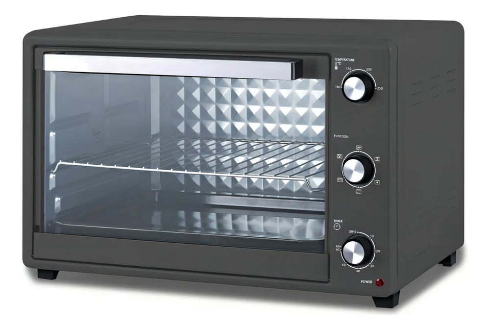Ideal para hornear, cocinar a la parrilla o a la plancha y tostar. Convección para lograr calor uniforme en toda la cavidad. Selector de temperatura de 100ºC a 250ºC. Timer de 60 minutos. Selector de potencia. 2 resistencias superiores y 2 inferiores. Apagado automático con timbre de aviso. Bandeja para cocción esmaltada. Rejilla y agarradera de acero inoxidable. Rejillas y bandeja regulables en altura. Detalles de acero inoxidable en manija y puerta. Horno Eléctrico Pioneer Home 70 Litros - Capacidad de 70 litros, ideal para preparar grandes cantidades de alimentos. - Función de convección para una cocción uniforme y rápida. - Múltiples modos de cocción: hornear, asar y gratinar. - Termostato ajustable para controlar la temperatura según la receta. - Temporizador de hasta 60 minutos con señal acústica. - Luz interior para monitorear el proceso de cocción. - Diseño moderno y elegante que se adapta a cualquier cocina. - Puerta de vidrio templado para mayor seguridad y visibilidad.