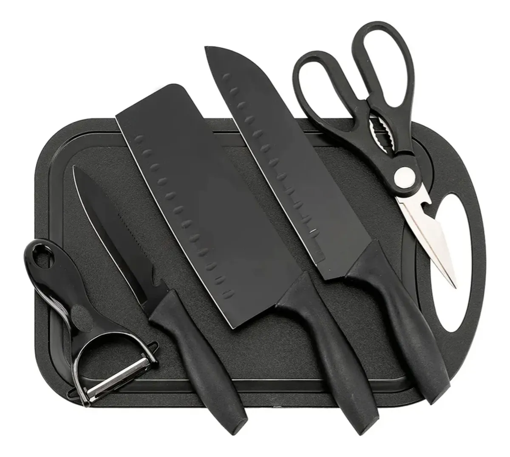 Equipá tu cocina con este completo set de cuchillos, tijera, pelador y tabla, ideal para facilitar la preparación diaria de tus comidas. El conjunto incluye tres cuchillos de acero inoxidable de distintos tamaños y usos, perfectos para cortar, picar y rebanar con precisión, además de una tijera multiuso práctica y funcional. Incorpora también un pelador de papas con hoja de acero inoxidable que garantiza un pelado eficiente y una tabla de plástico resistente, ideal para trabajar de manera cómoda e higiénica. Su diseño moderno aporta practicidad y estilo a cualquier cocina. Este set es una excelente opción tanto para el uso doméstico como para emprendimientos gastronómicos, gracias a la durabilidad de sus materiales y a su fácil limpieza. Características: Incluye: 3 cuchillos, tijera, pelador y tabla Material de los cuchillos y pelador: Acero inoxidable Material de la tabla: Plástico Uso: Doméstico y gastronómico Un conjunto versátil y funcional que convierte la cocina en un espacio más práctico y organizado. Sin garantía