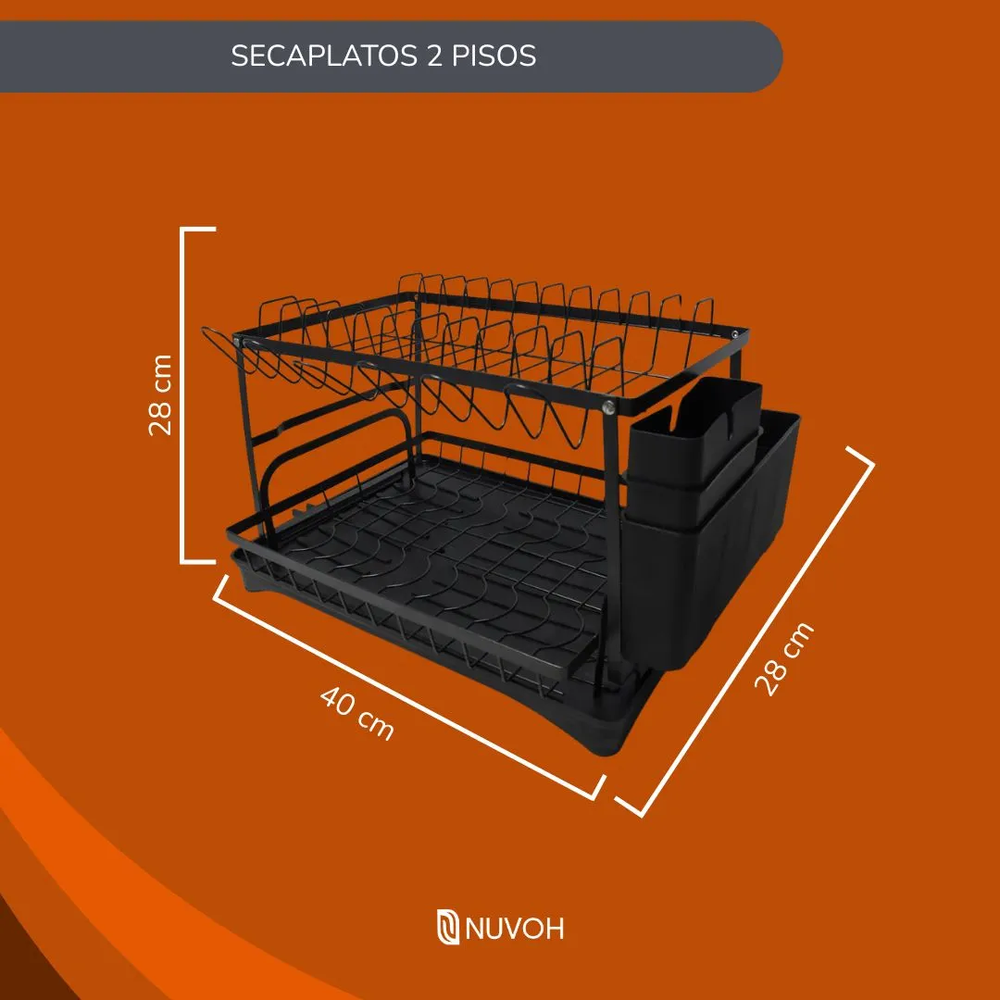 Escurridor Secaplatos 2 Pisos Negro Metal Generico