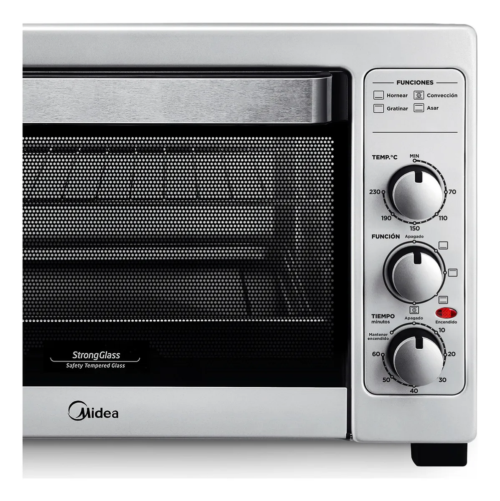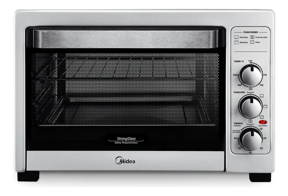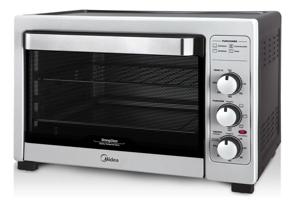 HORNO ELÉCTRICO MIDEA 40 LTS BRUTO. TO-M340SAR4 CARACTERÍSTICAS - Volumen bruto: 40 Litros. - Volumen neto: 32 Litros. - Potencia 1800 watts. - Eficiencia energética: B - Selector de temperatura. - Funciones: hornear, gratinar, asar y convección. - Temperatura: 70°C-230°C - Gabinete metálico de alta resistencia. - Luz interior. - Temporizador: hasta 60 minutos. - Señal luminosa de encendido. - Accesorios: pinza para asadera, asadera y rejilla. ESPECIFICACIONES TÉCNICAS: Ancho 535 mm Alto 356 mm Profundidad 403 mm Alim. Eléctrica 220V- 50Hz Código EAN: 7797087524682 Origen: CHINA