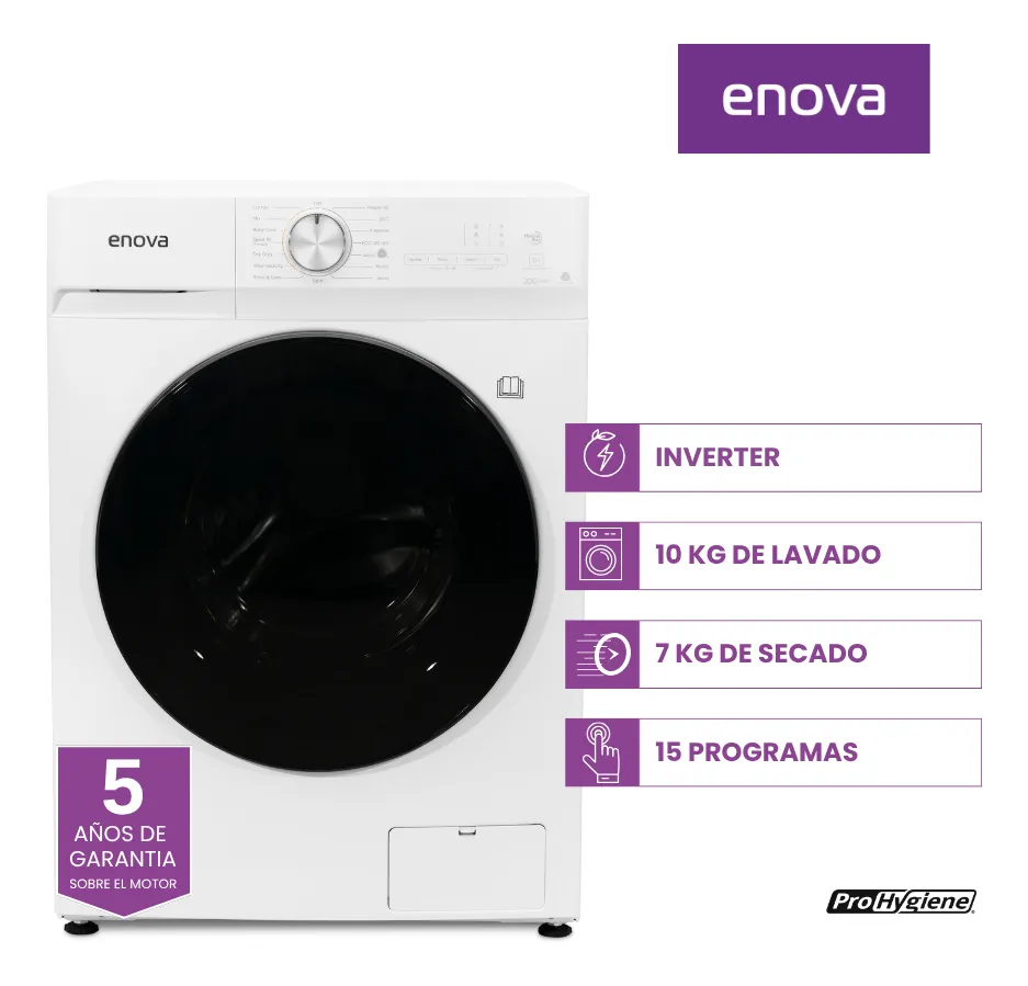 Lavasecarropas enova INVERTER carga frontal 10Kg Blanco 1500rpm