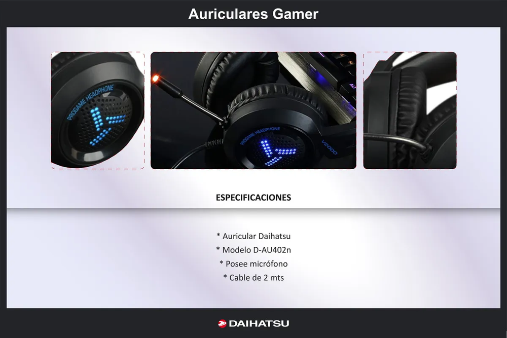 ¡Experimentá la adrenalina de sumergirte en la escena de otra manera! Tener auriculares específicos para jugar cambia completamente tu experiencia en cada partida. Con los Daihatsu D-AU402 no te perdés ningún detalle y escuchás el audio tal y como fue diseñado por los creadores. El formato perfecto para vos Al ser headset podrás escuchar tu música preferida, mantener llamadas telefónicas y jugar en línea desde tu PC sin perderte ningún detalle.