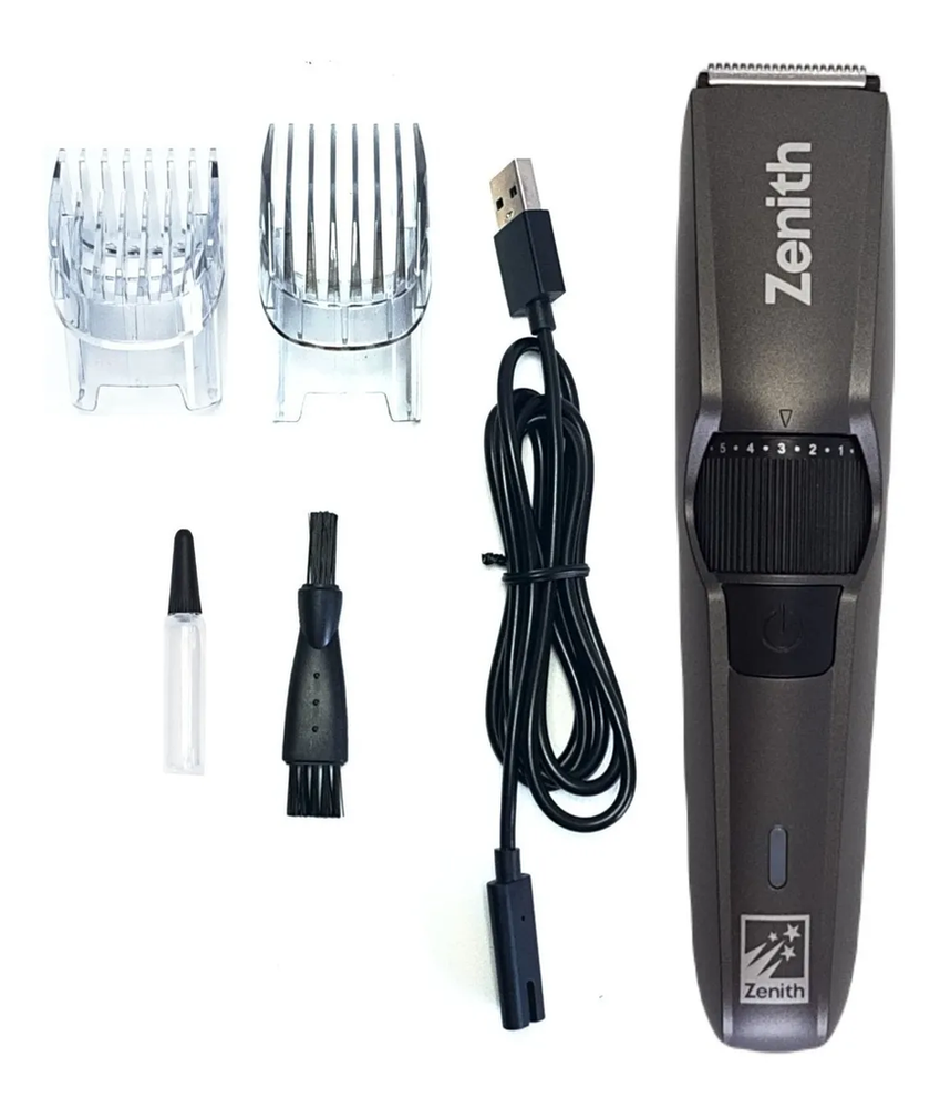 Corta Pelo y Barba Zenith Edge Z Innovador sistema de corte, duraderas cuchillas de acero y 2 peines regulables ajustables, ideal para un corte preciso de pelo y la barba. ESPECIFICACIONES TÉCNICAS - Regulador de altura: Permite regular la altura del peine. 20 pasos para una mayor precisión en tus cortes - Carga rápida USB: Son 2hs de carga rápida (dependiendo del uso, del tiempo del equipo (antigüedad) y del dispositivo de carga) - Acero inoxidable - Indicador de Luz Led - Batería larga duración - Tecnología anti-bacterial - Motor potente - 2 peines regulables - Compacto y portátil - Tecnología AntiBacterial - Potencia: 5W - Alto: 16cm - Ancho: 3,6cm - Peso: 108g Incluye: - 1 corta pelo Zenith Edge Z - 1 liquido lubricante - 1 cepillo limpiador - 1 cable USB - 2 peines intercambiables