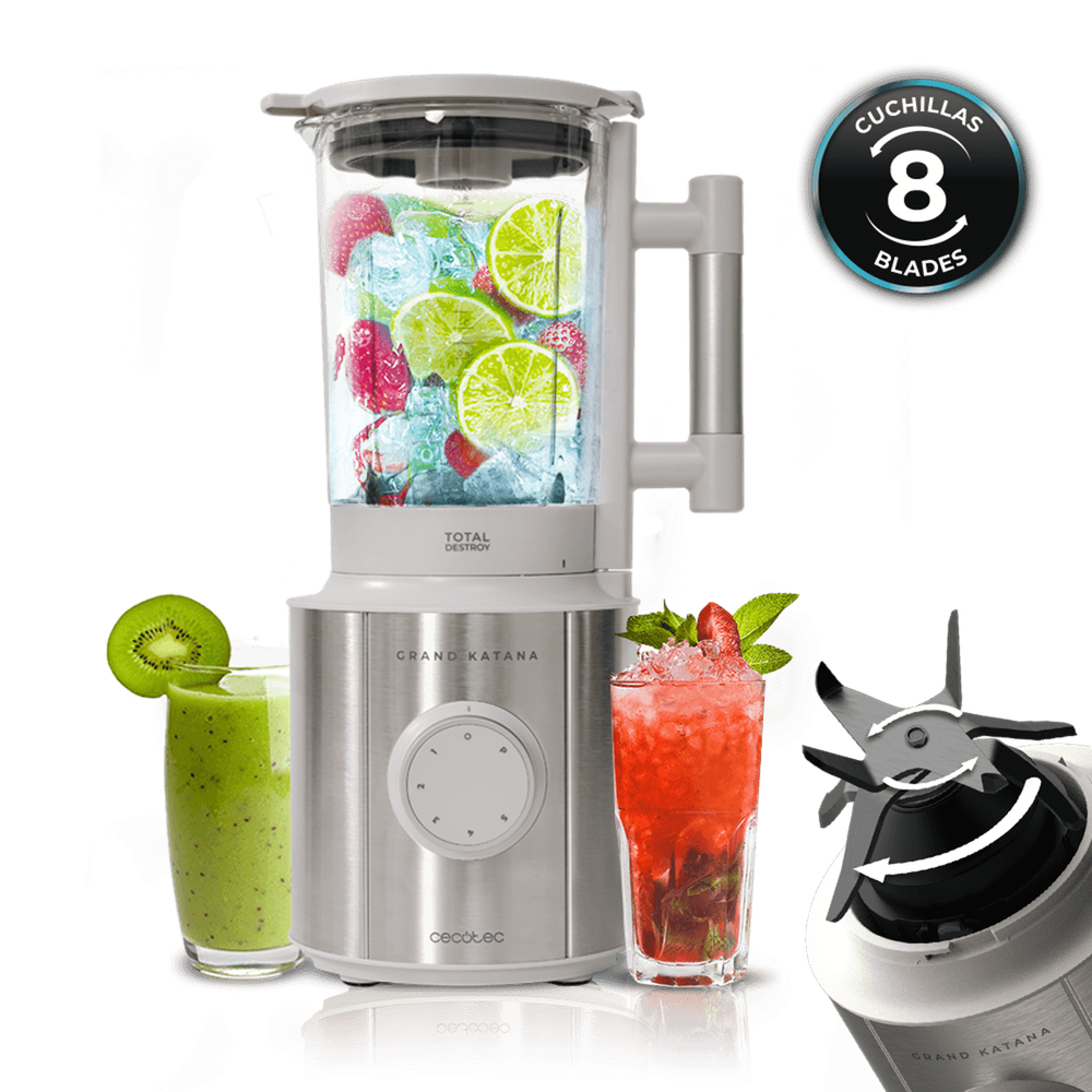 La Cecotec Grand Katana 2700MAX Total Destroy White es una licuadora de vaso de alta potencia diseñada para triturar, licuar y pulverizar incluso los ingredientes más duros con resultados finos y homogéneos en segundos.