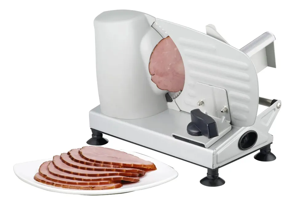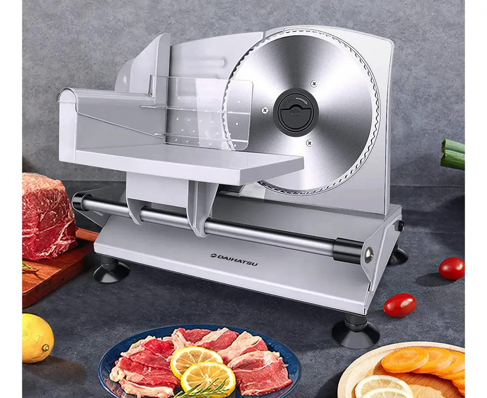 La cortadora de fiambres DAIHATSU D-COR150 es una herramienta esencial para quienes buscan la comodidad de preparar sus alimentos en casa. Con un potente motor de 150 W, proporciona un sistema eficiente y preciso, ideal para obtener cortes a gusto de quien la use. Equipado con un disco de 170 mm de diámetro, este aparato se adapta a diferentes tipos de alimentos, desde embutidos hasta quesos. Fabricada en metal con una cuchilla de acero inoxidable, la durabilidad y resistencia son parte de su diseño. Su grosor ajustable permite personalizar el espesor del corte entre 0 y 15 mm, brindando versatilidad para cada ocasión. Su diseño compacto de 25 cm de alto, 35 cm de ancho y 22 cm de largo, junto con un peso de solo 2,8 kg, facilita su almacenamiento y manejo. La cortadora de fiambres está diseñada para brindar seguridad y comodidad en cada uso. Cuenta con una base antideslizante que garantiza estabilidad durante el corte. Además, su cuchilla de acero se puede remover fácilmente, lo que facilita una limpieza rápida y profunda, manteniendo siempre la higiene del equipo. Ideal para el uso doméstico, la cortadora DAIHATSU es perfecta para los amantes de la cocina que valoran la calidad y el detalle en la presentación de sus platos.