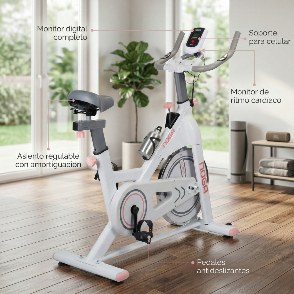 BICICLETA FIJA + APP+ SOP CEL NOGA