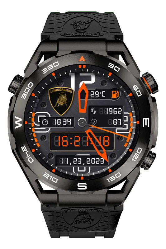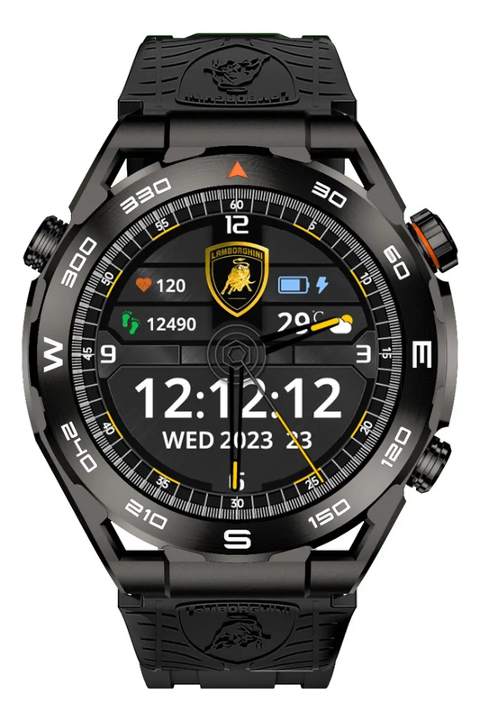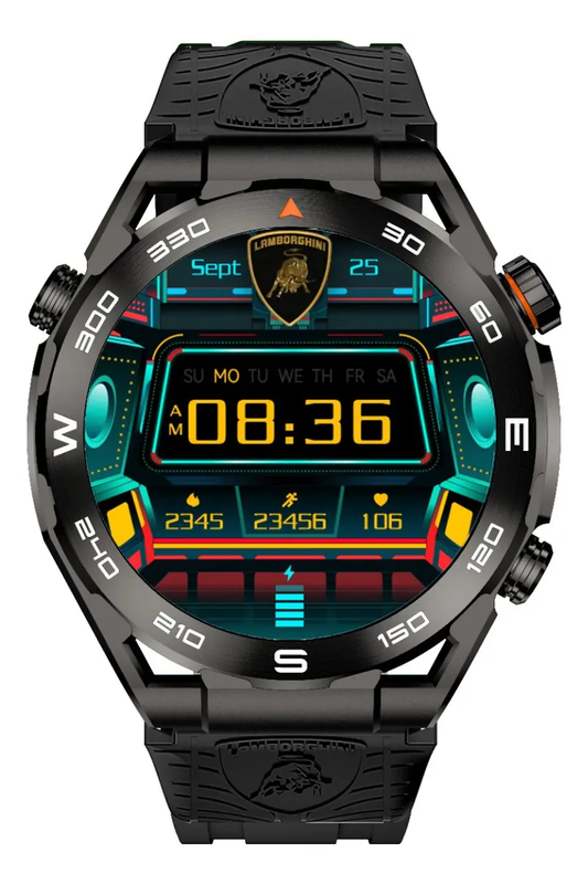 | Smartwatch Lamborghini Aventador V12 GT, una pieza de tecnología que combina elegancia y funcionalidad. Con una pantalla AMOLED de 1.43 pulgadas, este smartwatch ofrece una visualización nítida y vibrante, ideal para quienes buscan un dispositivo que se adapte a su estilo de vida activo y sofisticado. Diseñado con una caja de ABS y un bisel de DLC en color negro, este modelo resalta por su robustez y estética deportiva. La malla de silicona en diseño milanés proporciona comodidad y asegura un ajuste perfecto durante cualquier actividad. Con un peso de solo 140 g, es ligero y fácil de llevar. El smartwatch es resistente al agua con clasificación IP69, lo que lo hace perfecto para el uso diario y actividades al aire libre. Su memoria interna de 128 GB y la duración de la batería de hasta 510 horas garantizan un rendimiento excepcional, permitiendo almacenar aplicaciones y datos sin preocupaciones. Compatible con sistemas operativos iOS y Android, el Aventador V12 GT incluye funciones como cronómetro y conectividad Bluetooth, facilitando la sincronización con otros dispositivos. Este smartwatch es la elección ideal para quienes buscan un accesorio que combine tecnología avanzada con un diseño distintivo y elegante. Aviso legal • La duración de la batería depende del uso que se le dé al producto. |