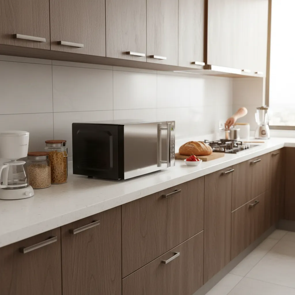 El microondas Lusqtoff LQ-HM201D es la solución ideal para quienes buscan funcionalidad y estilo en la cocina. Con una capacidad de 20 litros, este electrodoméstico es perfecto para calentar, descongelar y cocinar una variedad de alimentos de manera rápida y eficiente. Su diseño en color negro espejado no solo aporta elegancia, sino que también se adapta a cualquier decoración moderna. Con una potencia de 700 W, este microondas garantiza un rendimiento óptimo en cada uso. Su tipo de alimentación eléctrica asegura un funcionamiento sencillo y práctico, ideal para el día a día. Además, su puerta espejada añade un toque de sofisticación, convirtiéndolo en un elemento atractivo en tu cocina. Diseñado para ser colocado sobre la mesada, el LQ-HM201D es compacto y fácil de integrar en espacios reducidos. Su interfaz digital permite un manejo intuitivo, facilitando la selección de funciones y tiempos de cocción. Este microondas es la elección perfecta para quienes valoran la eficiencia sin sacrificar el estilo.