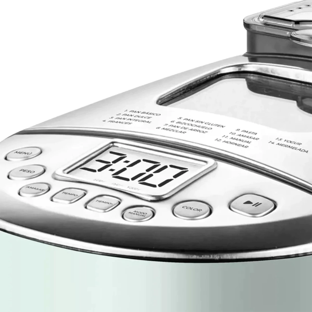 Su diseño compacto y moderno incluye 14 programas preestablecidos para preparar pan, tortas, mermeladas ¡y mucho más! Podés personalizar cada receta con sus niveles de tostado y seguir cada paso fácilmente gracias a su display LCD.