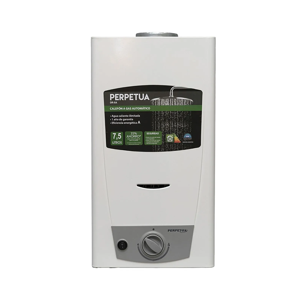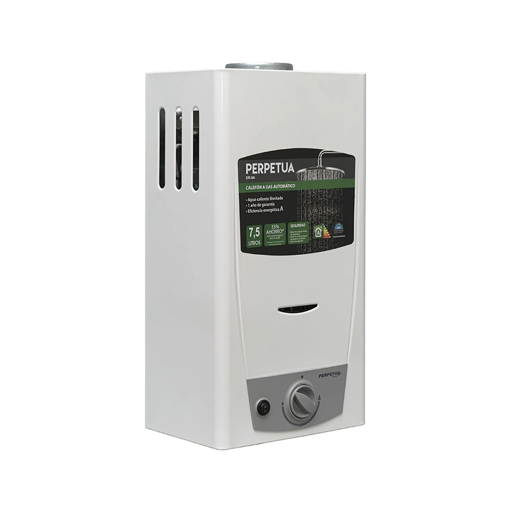 Este calefón Perpetua te ofrece agua caliente al instante con un sistema de encendido automático y una eficiencia energética clase A. Con sus 7,5 Lts de capacidad, vas a tener agua caliente ilimitada para toda tu casa.
