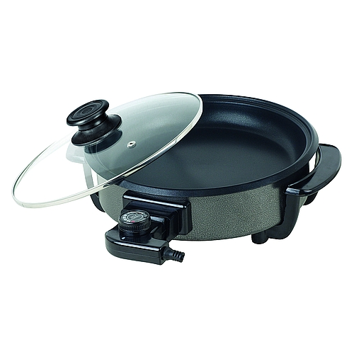 MULTICOCINA W52 * Cocina multiuso redonda * Superficie anti-adherente * Termostato ajustable y extraíble para facilitar la limpieza * 5 niveles de cocción * Tapa de vidrio templado * Cocina sin humo ni olor * Potencia: 1500W